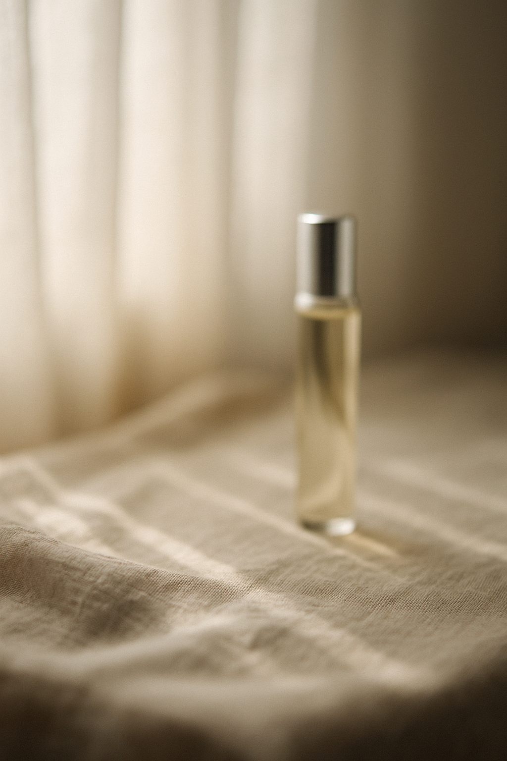 It begins with the freshness of aqua and smoked amber — a breath after the flame — then warms into soft violet and powdery musk, a quiet strength beneath the surface. As the day unfolds, amber and sandalwood emerge, glowing like embers against the skin. A scent shaped by heat, softened by light.
